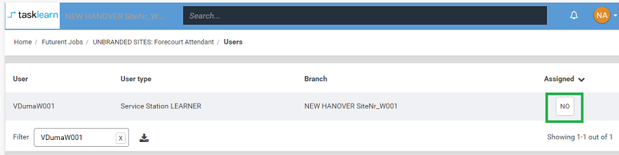 On the right of the user’s name, click on the corresponding NO to assign the JOB to that user