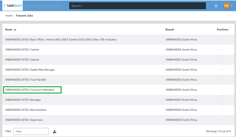 Click on the JOB of the new user from the list e.g. “FORECOURT ATTENDANT”